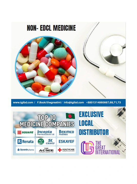 Reputed brand like SKF, Opsonin, Incepta, ACME, Square, Beximco, Healthcare, Renata, ACI, Gonoshastha, Navana etc.